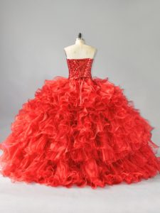 Charming Organza Sweetheart Sleeveless Lace Up Beading and Ruffles and Sequins Quinceanera Dress in Red