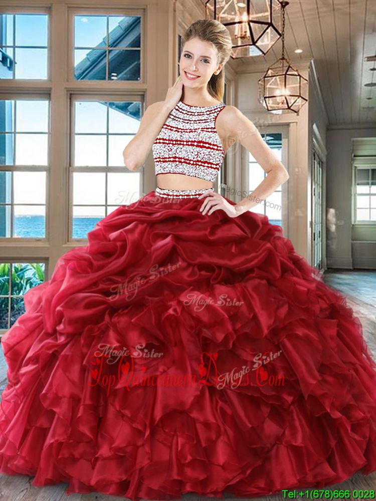 Charming Pick Ups Floor Length Wine Red Ball Gown Prom Dress Scoop Sleeveless Backless