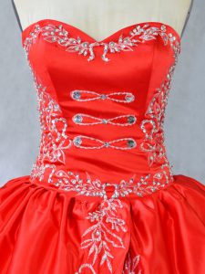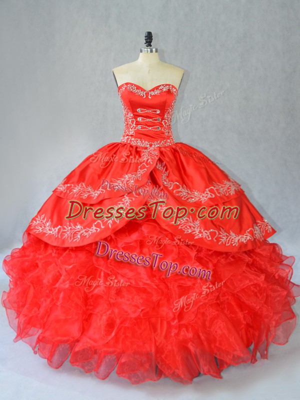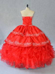 Charming Red Sweetheart Side Zipper Embroidery and Ruffles Vestidos de Quinceanera Sleeveless