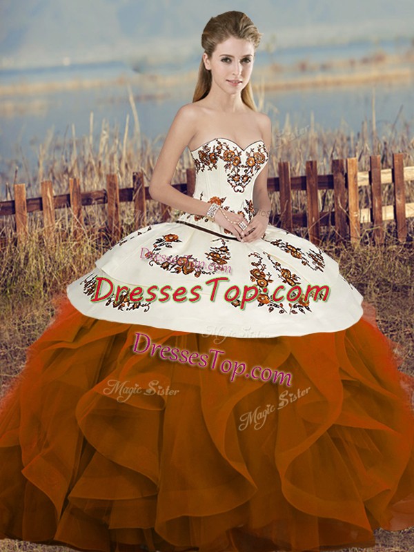 Charming Sleeveless Embroidery and Ruffles and Bowknot Lace Up Sweet 16 Quinceanera Dress