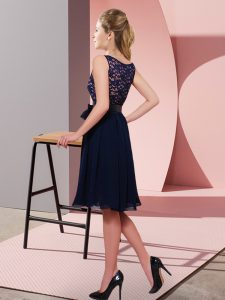 Charming Sleeveless Knee Length Lace and Bowknot Side Zipper Court Dresses for Sweet 16 with Aqua Blue