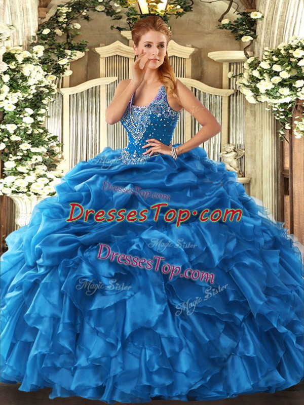 Charming Sleeveless Lace Up Floor Length Beading and Ruffles and Pick Ups Sweet 16 Dresses