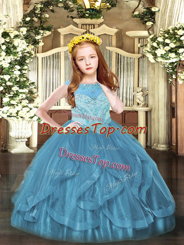 Charming Teal Zipper Girls Pageant Dresses Beading and Ruffles Sleeveless Floor Length