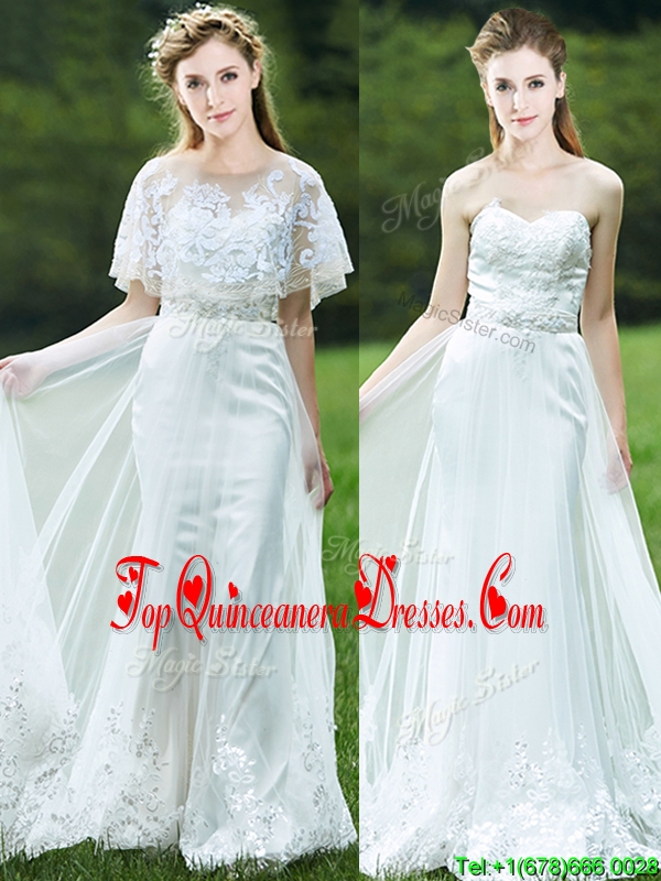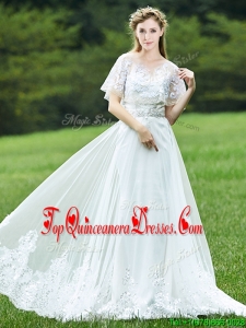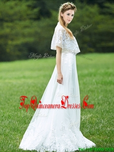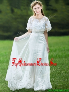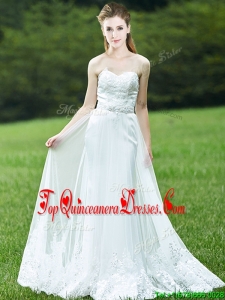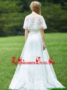 Cheap A Line Applique White Quinceanera Dama Dress with Brush Train