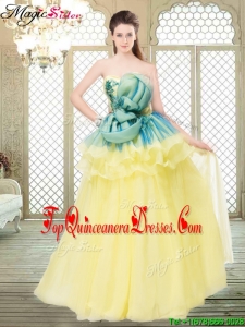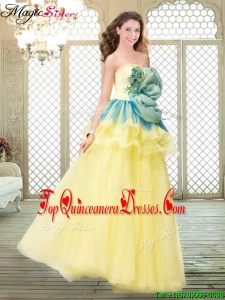 Cheap A Line Strapless Quinceanera Dresses with Bowknot and Ruffles
