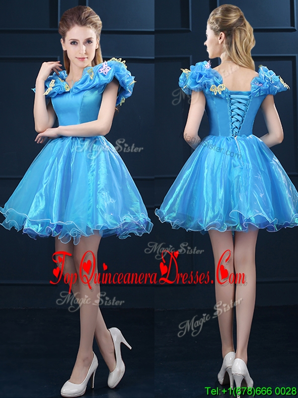 Cheap A Line V Neck Quinceanera Dama Dress with Butterfly Appliques