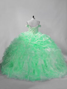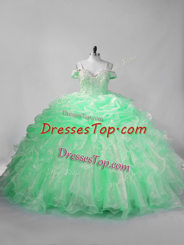 Cheap Apple Green Ball Gowns Straps Sleeveless Organza Lace Up Beading and Pick Ups Sweet 16 Dresses