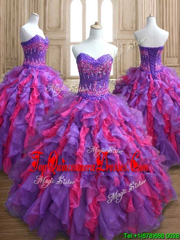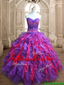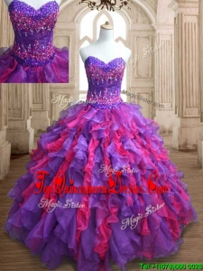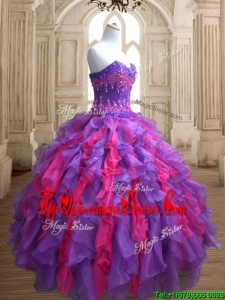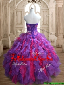 Cheap Applique and Ruffled Quinceanera Dress in Purple and Hot Pink