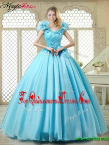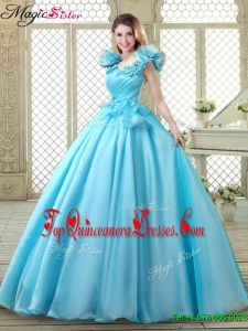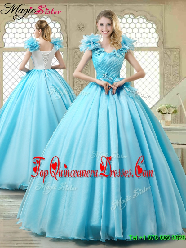Cheap Aqua Blue Quinceanera Gowns with Appliques and Ruffles