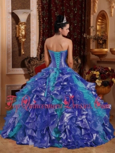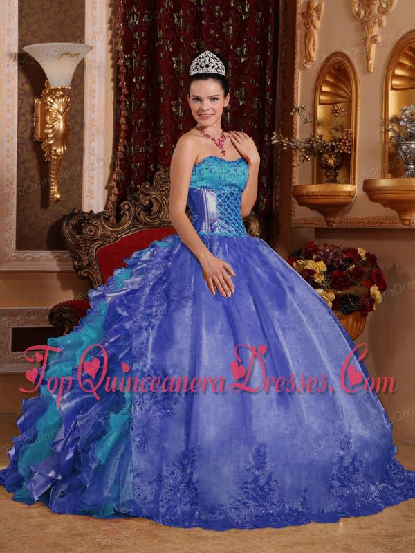 Cheap Ball Gown Blue Discount Quinceanera Dresses with Strapless Floor-length Organza Embroidery