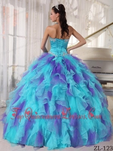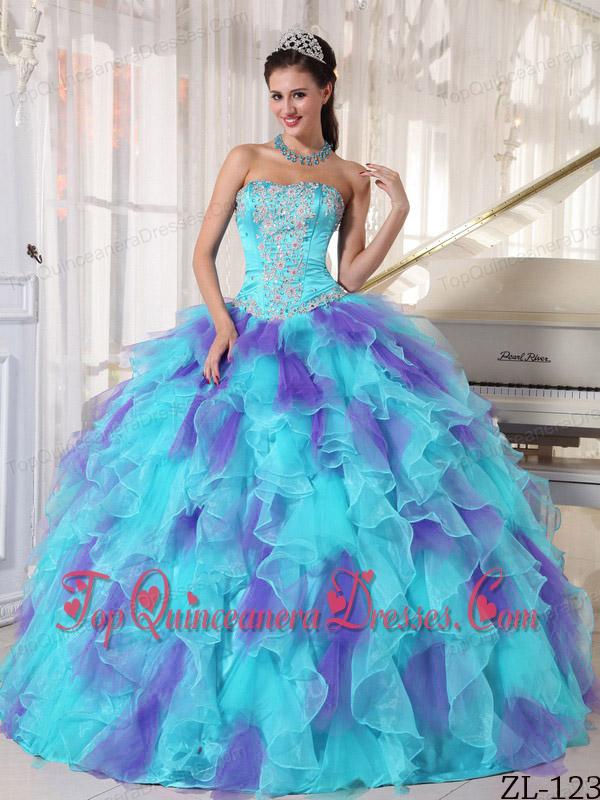 Cheap Ball Gown Strapless Organza Quinceanera Dress with Appliques and Ruffles