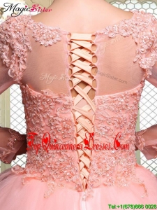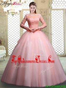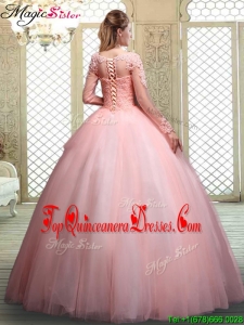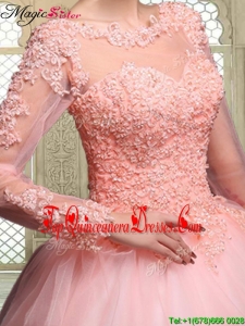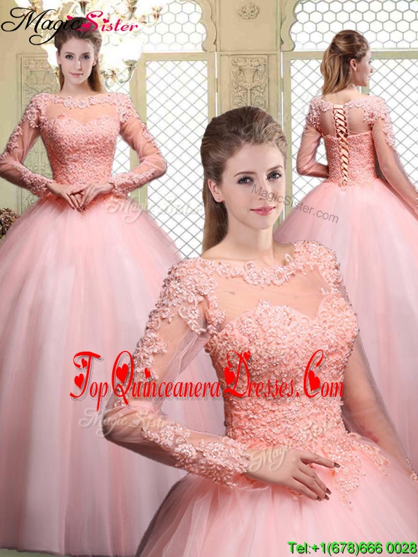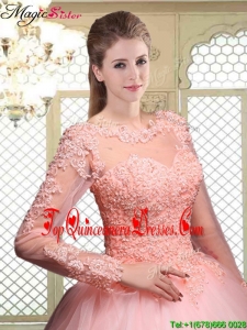 Cheap Bateau Long Sleeves Beading and Appliques Quinceanera Dresses