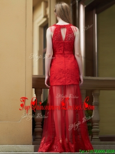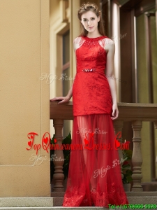 Cheap Belted Red Long Dama Dress in Tulle and Lace