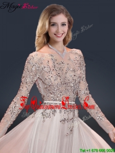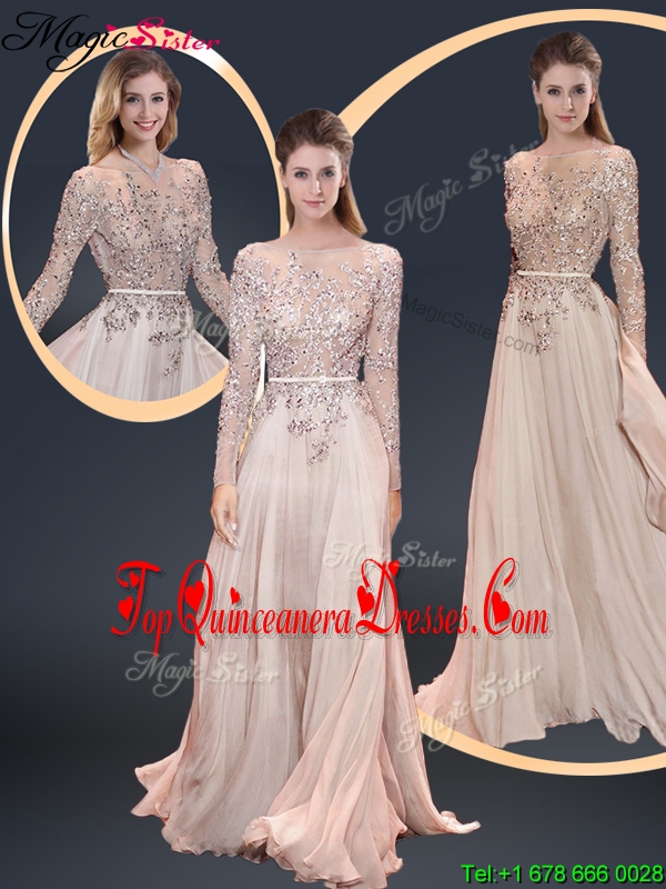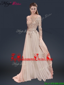 Cheap Brush Train Champagne Dama Dresses with Beading