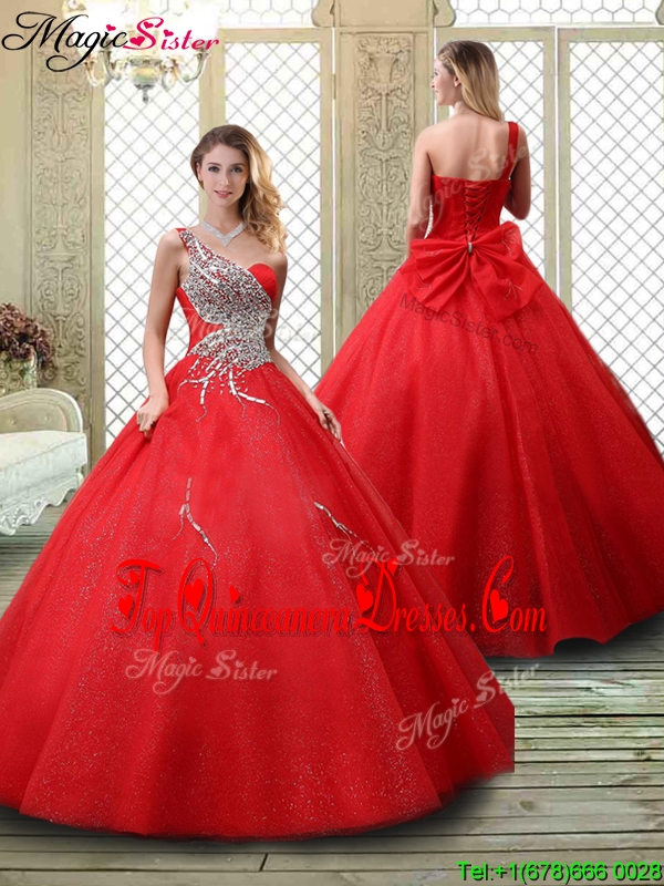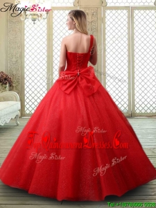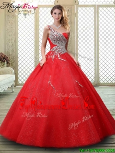 Cheap Classical One Shoulder Quinceanera Dresses with Beading in Red
