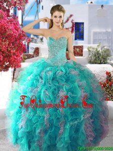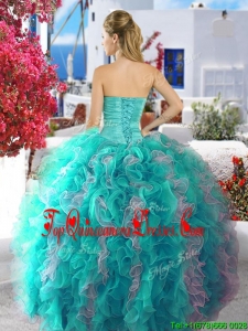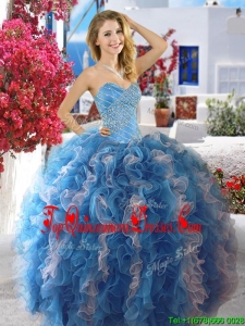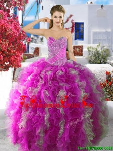 Cheap Fuchsia and White Organza Sweet 16 Dress with Beading and Ruffles
