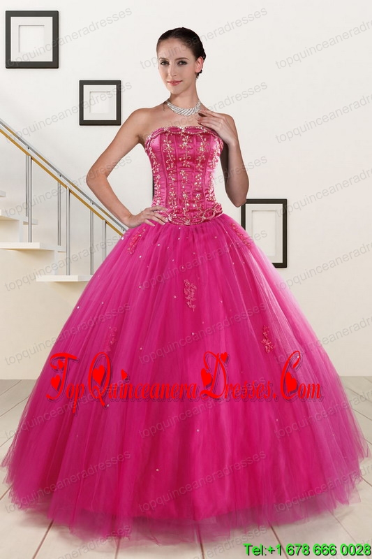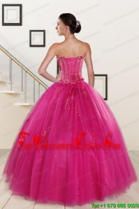Cheap Fuchsia Quinceanera Dresses with Beading and Appliques for 2015