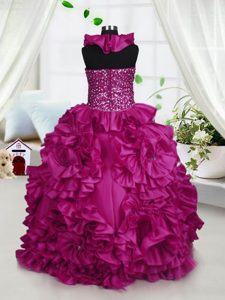 Cheap Halter Top Beading and Ruffles Little Girls Pageant Dress Wholesale Fuchsia Zipper Sleeveless Floor Length
