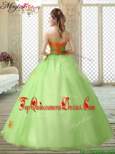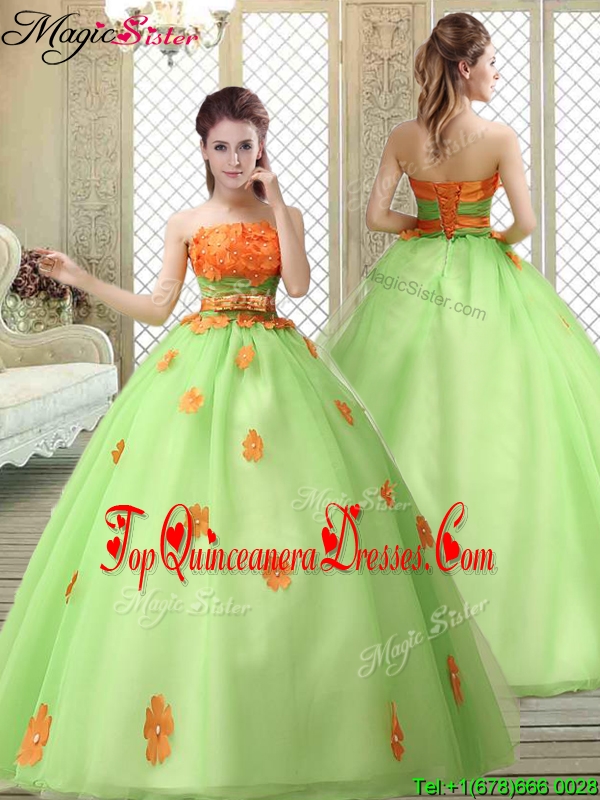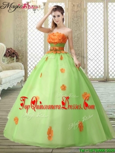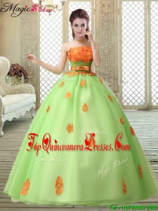 Cheap Latest Strapless Quinceanera Gowns with Appliques and Belt