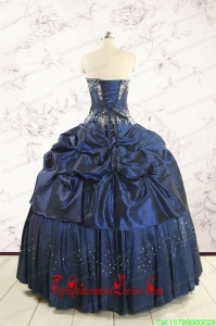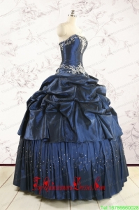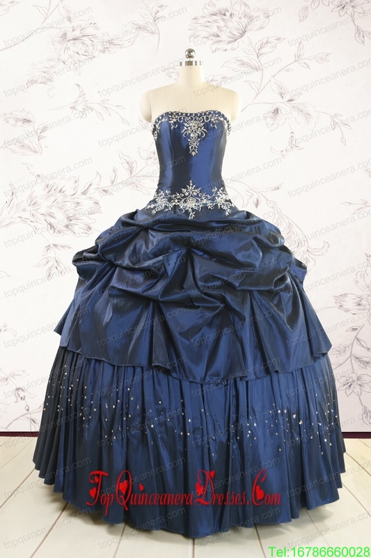 Cheap Navy Blue Quinceanera Dress with Embroidery and Pick Ups