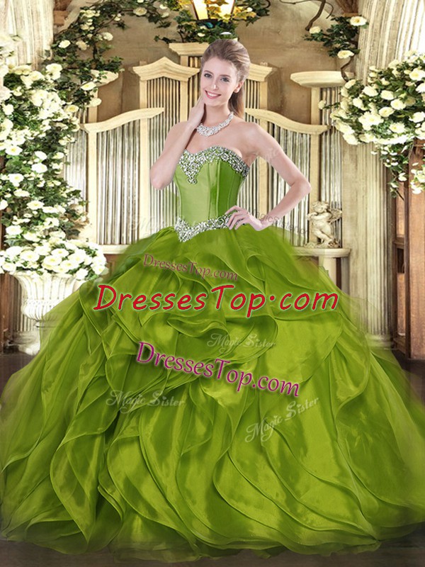 Cheap Olive Green Sweetheart Neckline Beading and Ruffles Sweet 16 Dress Sleeveless Lace Up