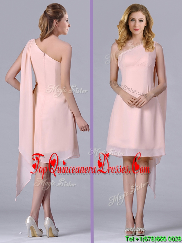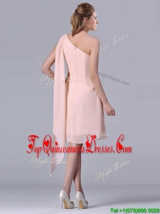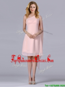 Cheap One Shoulder Chiffon Ruching Short Dama Dress in Pink