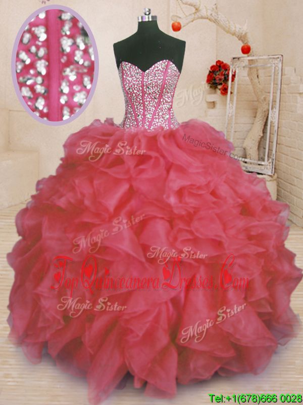 Cheap Organza Sleeveless Floor Length Sweet 16 Quinceanera Dress and Beading and Ruffles