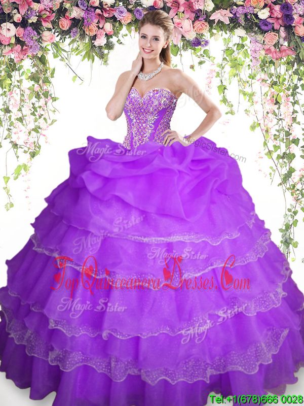 Cheap Pick Ups Ruffled Floor Length Purple Sweet 16 Dress Sweetheart Sleeveless Lace Up