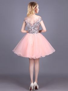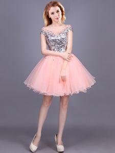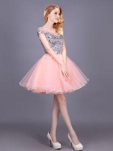 Cheap Pink Off The Shoulder Zipper Sequins Dama Dress for Quinceanera Short Sleeves
