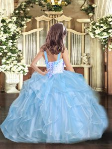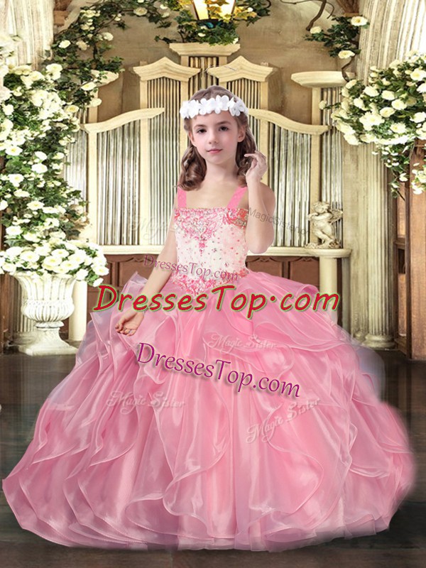 Cheap Pink Organza Lace Up Straps Sleeveless Floor Length Little Girls Pageant Dress Beading and Ruffles