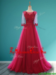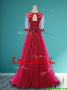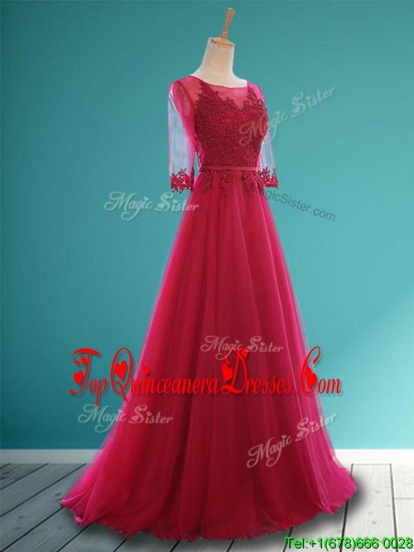 Cheap Scoop Appliques and Belt Damas Dress in Wine Red