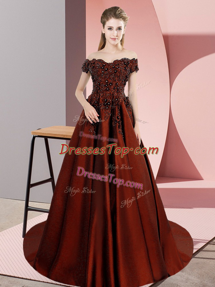 Cheap Sleeveless Appliques Zipper 15 Quinceanera Dress with Rust Red Court Train