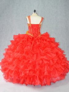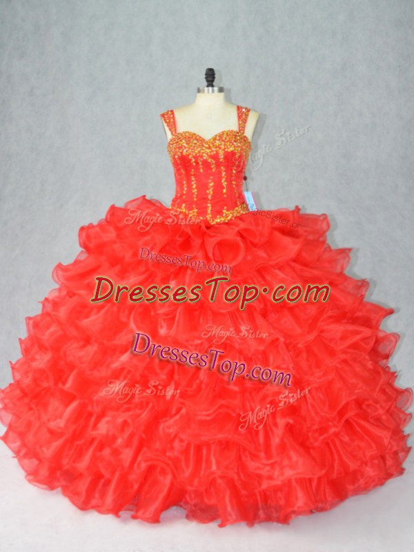 Cheap Sleeveless Lace Up Floor Length Beading and Ruffles Quince Ball Gowns