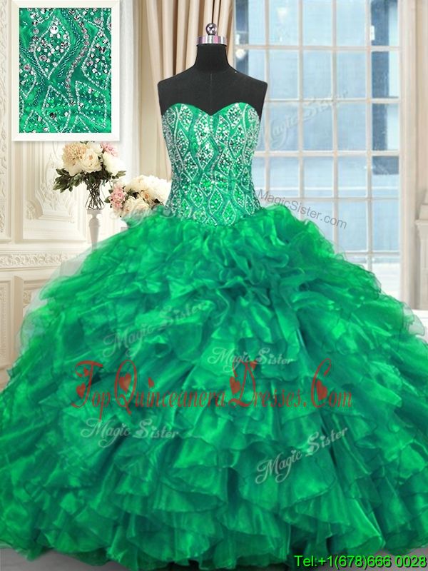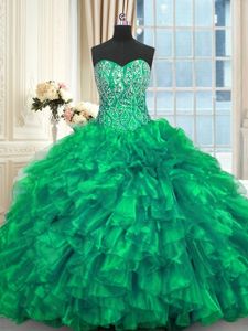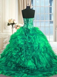 Cheap Sleeveless Organza Brush Train Lace Up Sweet 16 Dresses in Turquoise for with Beading and Ruffles