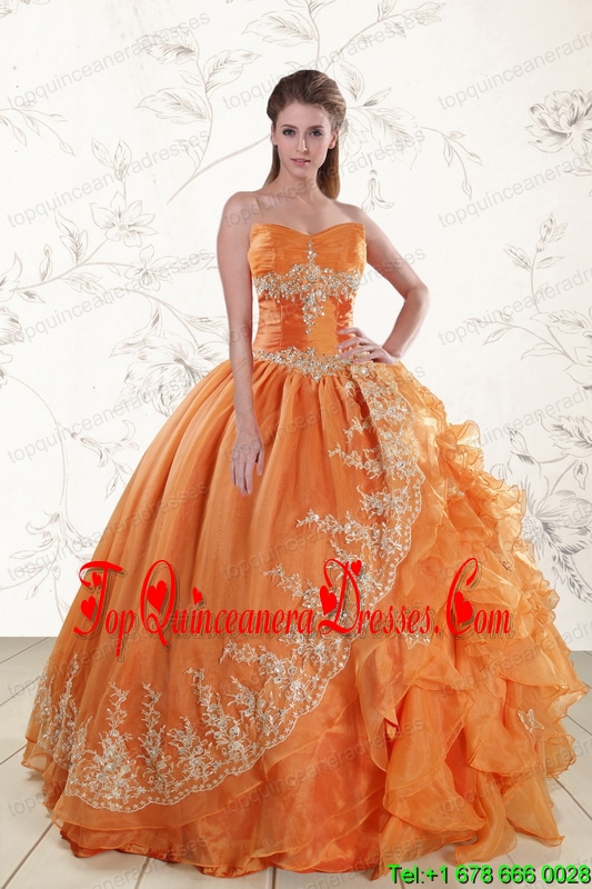 Cheap Strapless Appliques 2015 Quinceanera Dresses in Orange