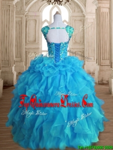 Cheap Straps Beading and Ruffles Quinceanera Dress in Aqua Blue