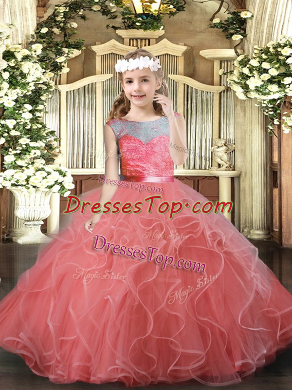 Cheap Tulle Sleeveless Floor Length Little Girl Pageant Dress and Lace and Ruffles