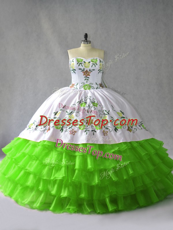 Chic Ball Gowns Embroidery and Ruffled Layers Sweet 16 Dress Lace Up Satin and Organza Sleeveless Floor Length