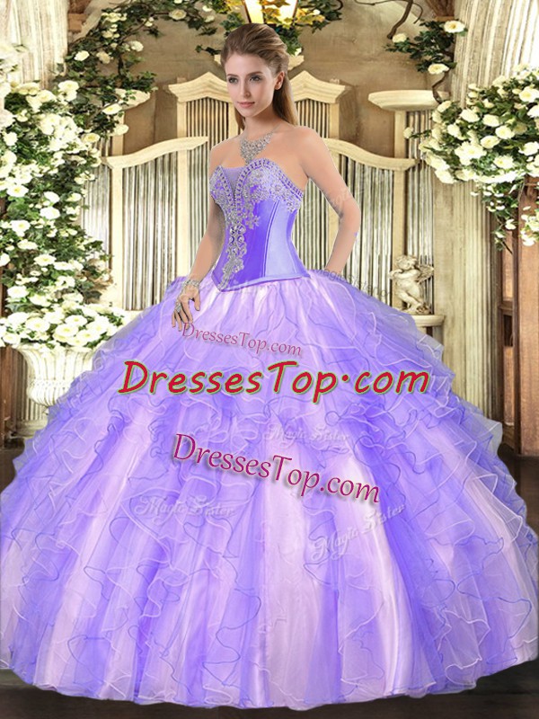 Chic Ball Gowns Sweet 16 Quinceanera Dress Lavender Sweetheart Tulle Sleeveless Floor Length Lace Up
