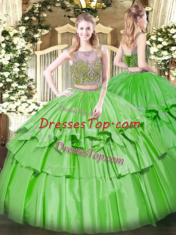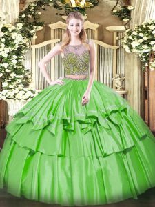 Chic Beading and Ruffled Layers Sweet 16 Quinceanera Dress Lace Up Sleeveless Floor Length