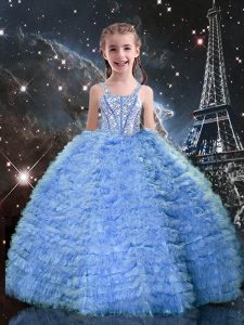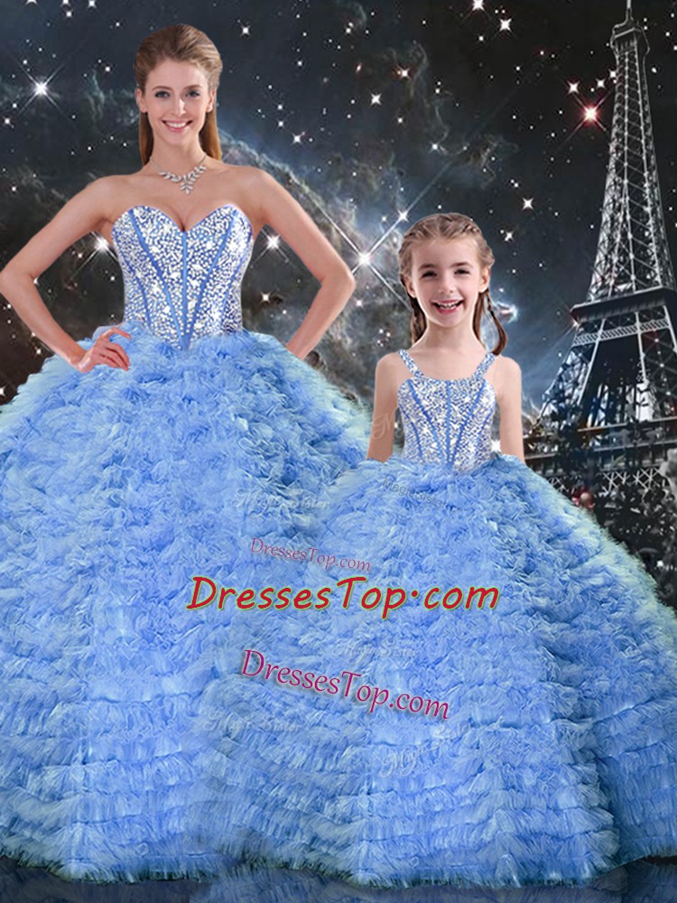 Chic Blue Lace Up Sweetheart Beading and Ruffles Quinceanera Gowns Tulle Sleeveless