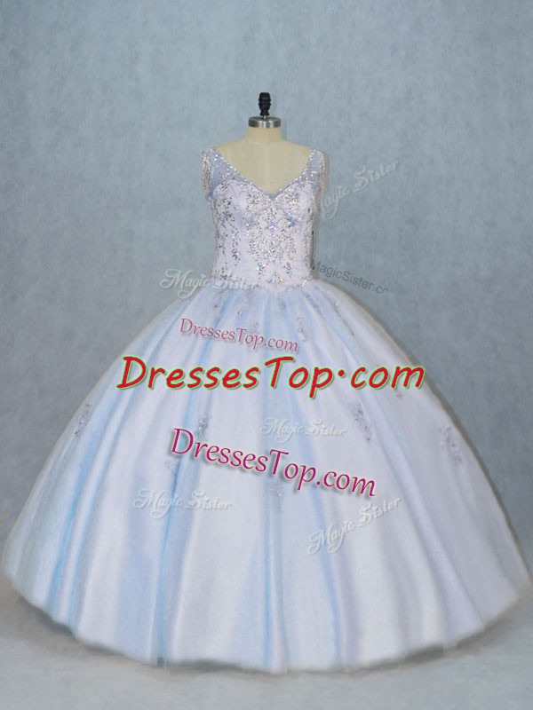 Chic Blue Sleeveless Tulle Side Zipper 15 Quinceanera Dress for Sweet 16 and Quinceanera