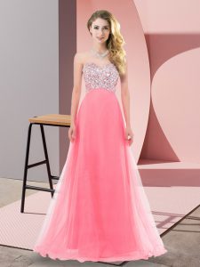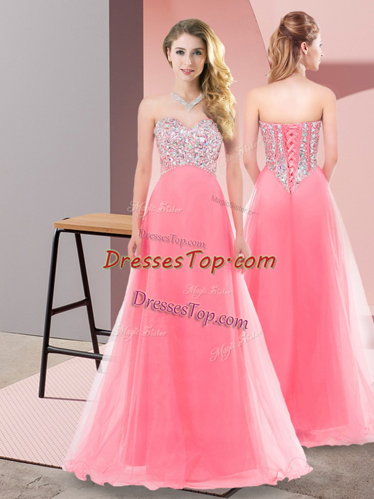 Chic Empire Vestidos de Damas Watermelon Red Sweetheart Tulle Sleeveless Floor Length Lace Up