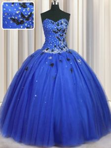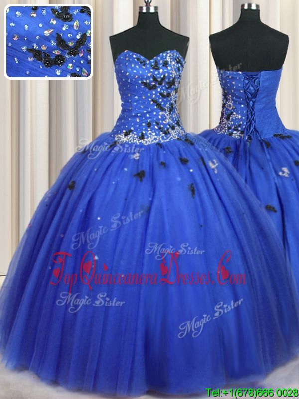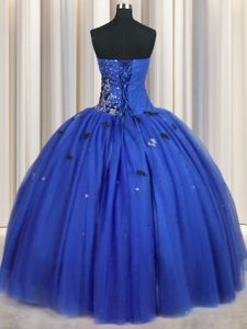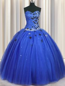 Chic Floor Length Ball Gowns Sleeveless Royal Blue 15 Quinceanera Dress Lace Up