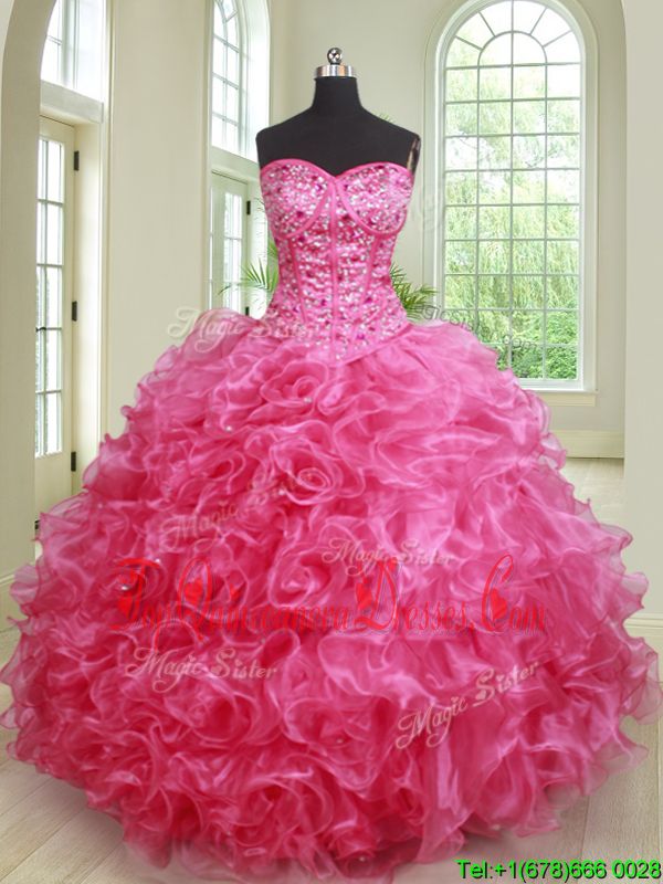 Chic Floor Length Hot Pink Sweet 16 Quinceanera Dress Sweetheart Sleeveless Lace Up