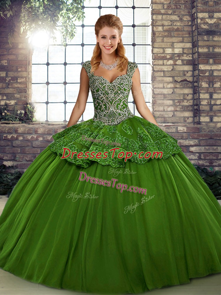 Chic Green Sleeveless Beading and Appliques Floor Length Quince Ball Gowns