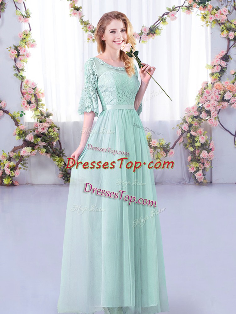 Chic Light Blue Side Zipper Dama Dress for Quinceanera Lace and Belt Half Sleeves Floor Length