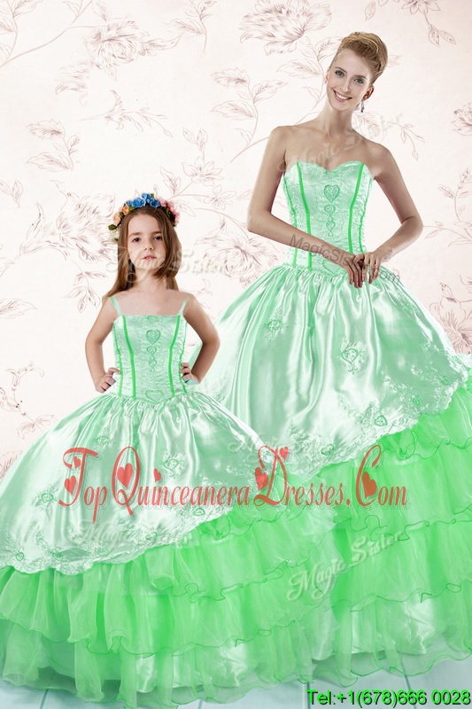 Chic Organza Sleeveless Floor Length Ball Gown Prom Dress and Embroidery and Ruffled Layers