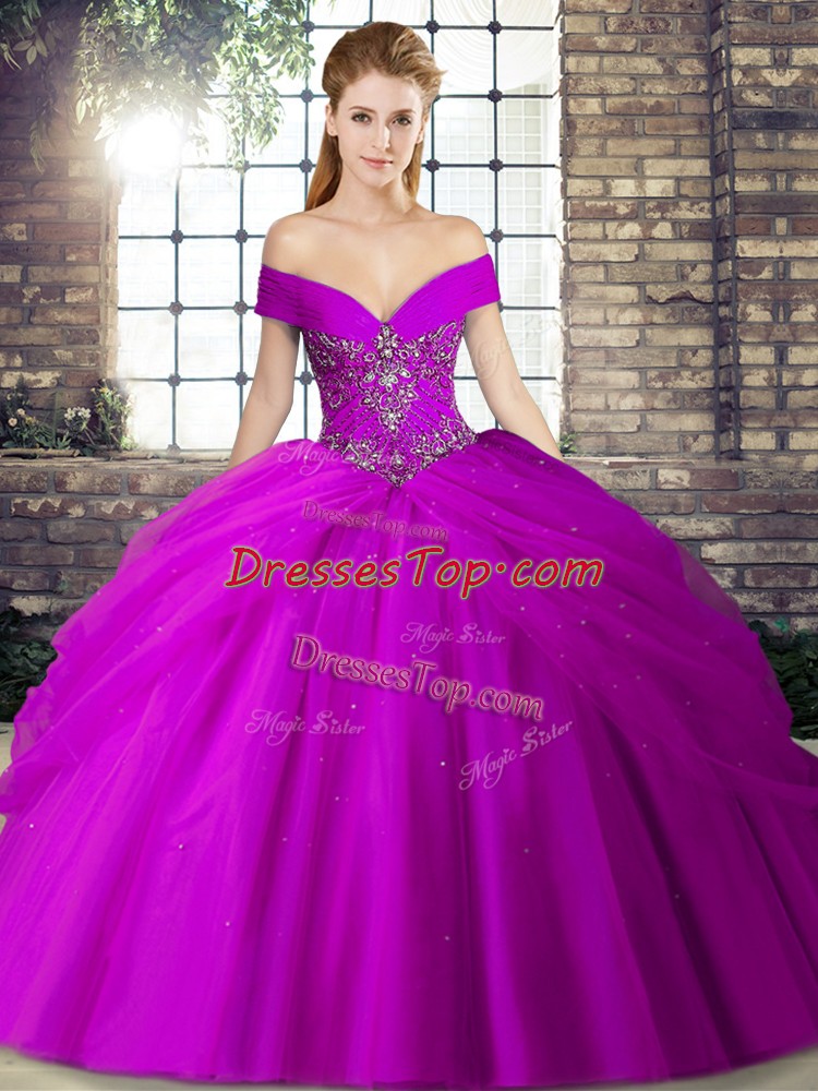 Chic Purple Ball Gowns Beading and Pick Ups Quinceanera Gowns Lace Up Tulle Sleeveless