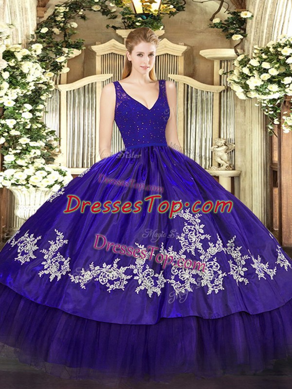Chic Purple Taffeta Zipper Ball Gown Prom Dress Sleeveless Floor Length Beading and Appliques